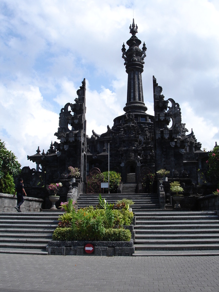 俗話說,救人一命勝造七級浮圖,意思就是說拯救一個人一命,比你花錢蓋七層高的浮圖來得偉大,所謂浮圖是梵語Buddha的音譯,意思就是佛陀,音是不是很像呢?浮圖是埋葬佛的墳墓,也被代表是佛陀的一部份,在中國就稱作塔,印度教與佛教都是祭拜釋迦摩尼,部分典故原由是通用的。而爬上小婆羅浮圖的頂端有一個展覽館,運用了許多模型來說明印尼的歷史文化,最重要的是60年前,1945年8月17日的獨立建國,同時也誕生了他們民族英雄(如同鄭成功的地位),島上有不少紀念雕像與碑文。